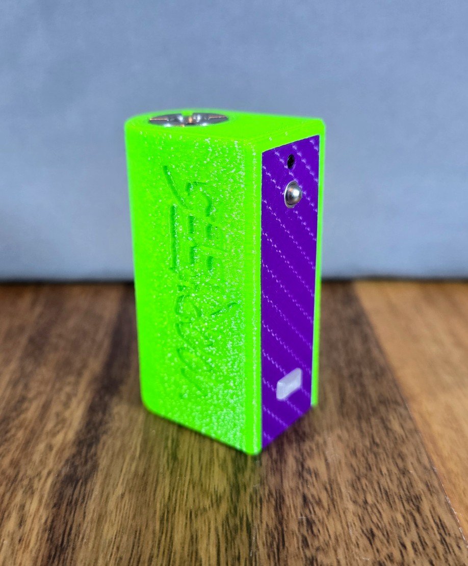 This is my first low-wattage mod and the first to feature the compact 18350 battery setup, all built into a sleek and rugged “Cart Mod” design. Powered by the Evolv DNA Go chipset, this device allows you to program up to five preset wattage levels using EScribe software.