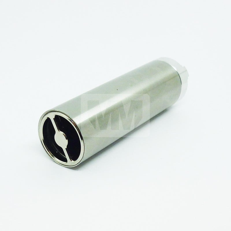 The MM Battery Tube V2 is the most advanced battery tube on the market. It is made from high-quality SS304 stainless steel and features a tinned brass top cap, tinned brass positive pin, glass filled peek insulator, and tinned brass battery cap. The top cap has 4 negative solder points that are easy to get to soldering temperature, and it also has 2 x m2.5 threaded holes for added customization. The thread size on the tube and battery cap has been increased to make it easier to tighten the cap.
